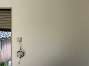 新設したコンセントとアンテナ端子一体型の器具です。これにより、テレビの裏側で全ての配線接続が完結し、外部からは一切配線が見えない状態になります。壁の色に合わせた目立たないデザインを選定しました。
