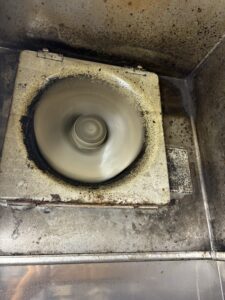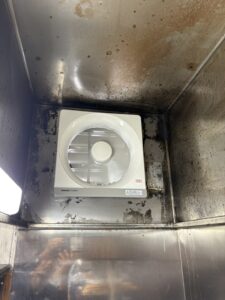 八戸市内のお客様より、キッチンの換気扇から異音がするとのご相談をいただきました。長年の使用により油汚れが蓄積し、モーターの回転が弱くなって吸い込みが悪い状態でした。火災などの二次被害を防ぐため、交換を提案いたしました。